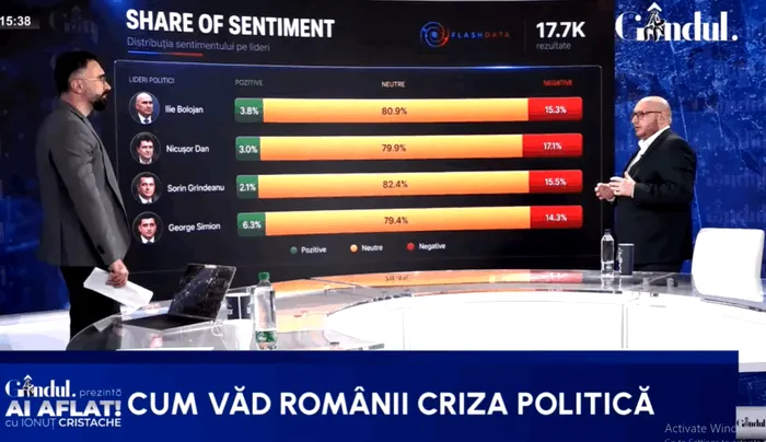 Vreau să-i explic un pic neutru, pentru că pare foarte mare. Numai că majoritatea mențiunilor sunt în cheie neutră. De exemplu, afirmația Ilie Bolojan a declarat că… este neutră. Nu e nici pozitivă, nici negativă. La fel pentru orice alt factor politic. Ne uităm un pic și pe negativ în primă fază. Vedem că cele mai multe mențiuni negative le are președintele Nicușor Dan. Și avem aici două elemente importante. În primă fază, el este contestat de plaja lui de suporteri. Este contestat, bineînțeles, și de ceilalți, și de PSD și de AUR. Și de aceea vedem negativul foarte mare, a mai explicat Cristi Roșu în studioul Gândul.