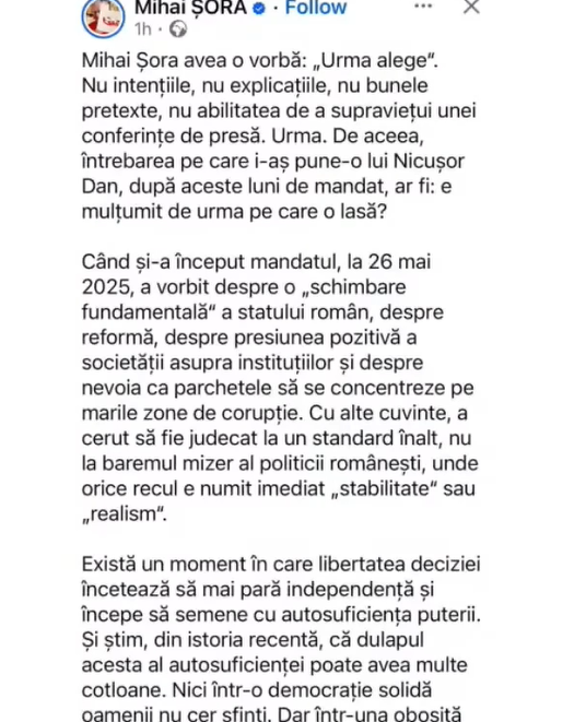 Mișcarea organizată în rândurile grupării #rezist în direcția susținerii premierului Bolojan îl include inclusiv pe regretatul filosof și activist civic Mihai Șora. Într-o analiză în cadrul emisiunii Ai Aflat! cu Ionuț Cristache, jurnalistul Doru Bușcu a comentat cele mai recente intervenții ale paginii de Facebook Mihai Șora, de unde ar transmite mesaje de propagandă chiar renumitul filosof.
