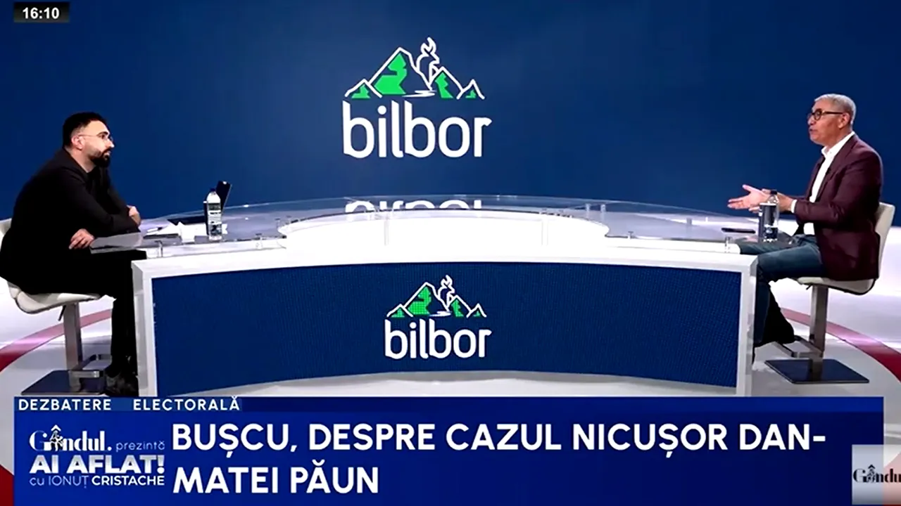 -De frică. Asta arată că motivele pentru care el ținea pe loc spitalul erau neîntemeiate și că a avut el capriciul ăsta să țină spitalul. Iar dacă Crin Antonescu ar fi avut consultanți mai buni, i-ar fi făcut și o listă, ar fi calculat câți morți, câți răniți, câți oameni au suferit în intervalul ăsta de cinci ani. Nicușor nu poate face față, spre dezamăgirea mea personală, unei înfruntări strict pe logică și pe semantică față în față cu un adversar ca Crin Antonescu. E bine ca să existe o absorbție a acelei experiențe în construcția individului de azi. Pentru că dacă faci știință, mintea ta este organizată și de la un om care a excelat în științe, te aștepți ca, cum ar fi de pilă Funeriu, și acolo este un fiasco al acestei tranziții a logicii și disciplinei de gândire din zona științifică în zona realității”, a fost dialogul dintre Ionuț Cristache și Doru Bușcu.