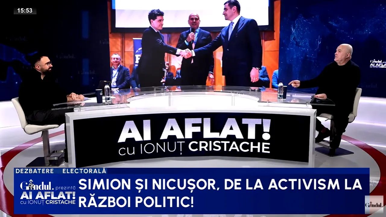 Într-o ediție transmisă live de Gândul a emisiunii „Ai aflat! cu Ionuț Cristache”, actorul  Florin Călinescu a abordat ideea de schimbare politică, sugerând că nu va face nicio diferență cine va câștiga alegerile prezidențiale, pentru că sistemul este același. Urmăriți aici, integral, emisiunea lui Ionuț Cristache.