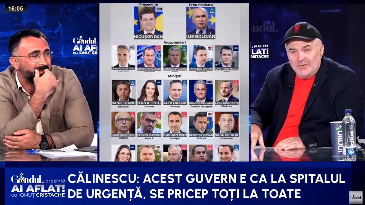 Florin Călinescu a fost invitat în emisiunea „Ai Aflat!”, cu Ionuț Cristache. Acesta a vorbit despre noul Guvern și miniștrii care îl formează. „Nu se poate să stai o lună și să aduci acest autobuz care cade în neant peste noi”, spune el.