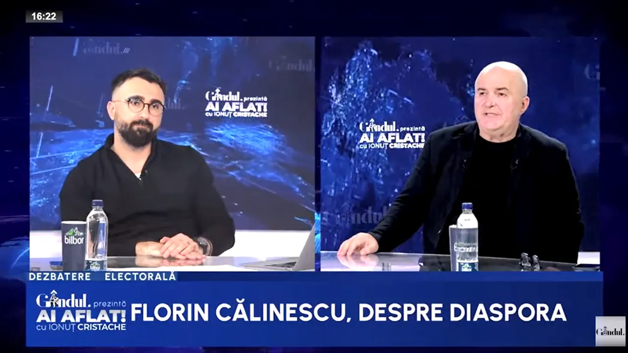 În cadrul unei ediții transmise live de Gândul a emisiunii „Ai Aflat! cu Ionuț Cristache”, Florin Călinescu, actor român și realizator de emisiuni TV, a vorbit despre care va fi soarta românilor din viitorul apropiat, dar și despre implicarea lui Băsescu în televiziuni.  Urmăriți aici, integral, emisiunea lui Ionuț Cristache.