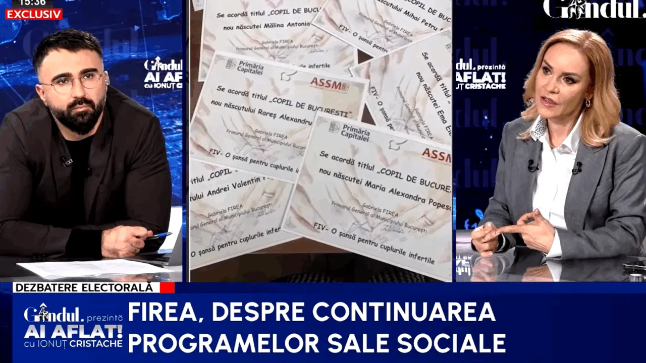 Invitată în ediția de luni a emisiunii Ai Aflat! cu Ionuț Cristache, Gabriela Firea, fost primar general al Capitalei, a vorbit pe marginea a ceea ce consideră a fi cea mai mare realizare a mandatului său – proiectele sociale.