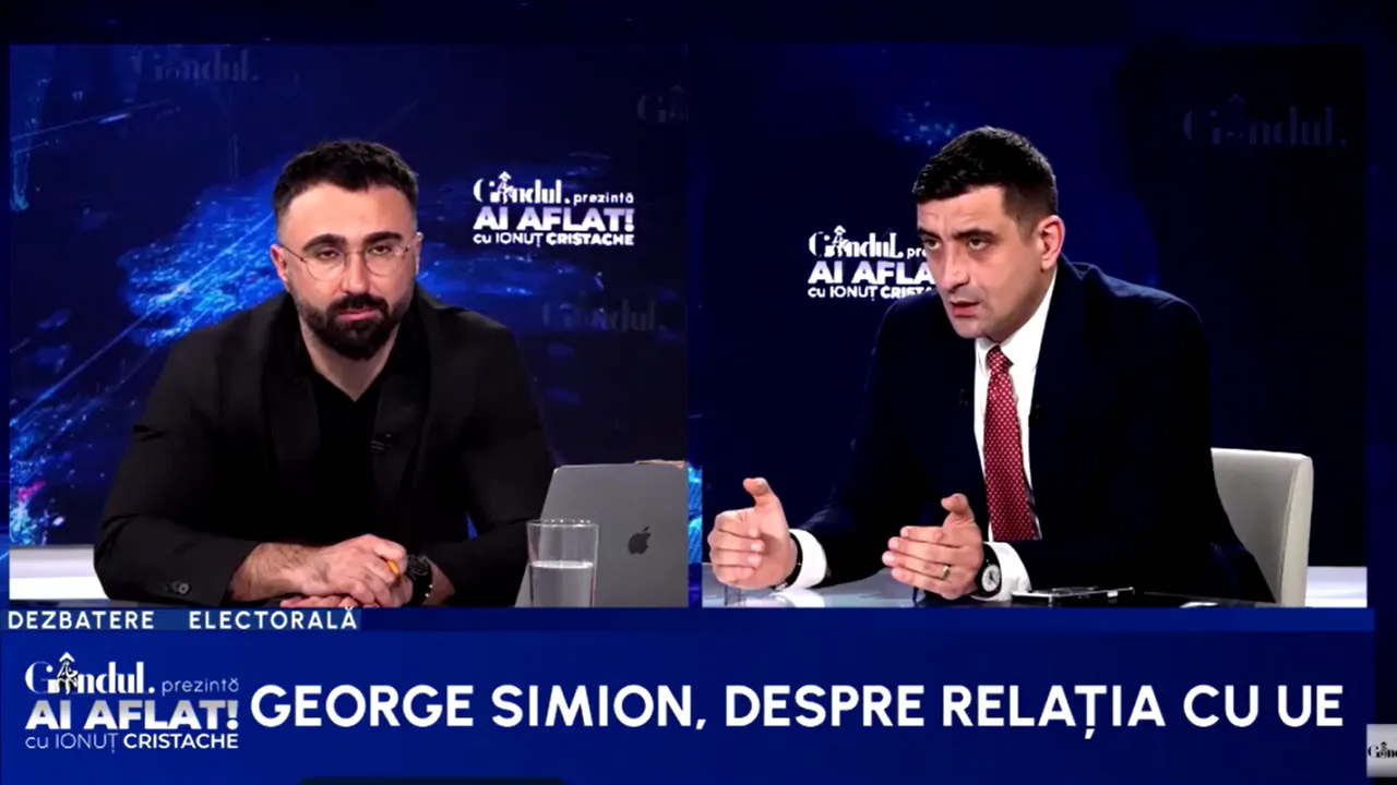 Prima pagină » Ai Aflat! cu Ionuț Cristache » George Simion: „UE trebuie să rămână o alianță de state SUVERANE. Nu un supra-stat federal”
