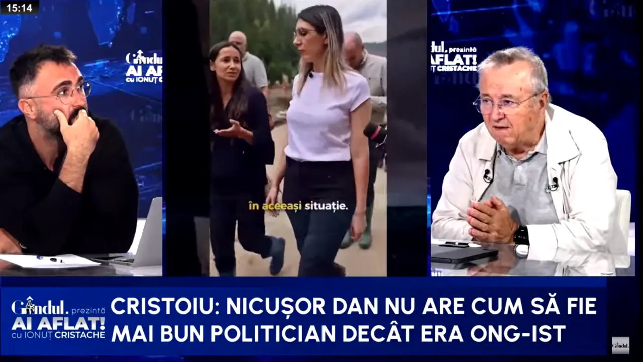 „Talentul de politician, și dacă ești consilier la Găgești, și dacă ești președinte… Nicușor n-are cum să fie mai bun politician decât când era ONG-ist. Nu are cum. Te naști cu talentul de ziarist, de conducător” , spune Ion Cristoiu.