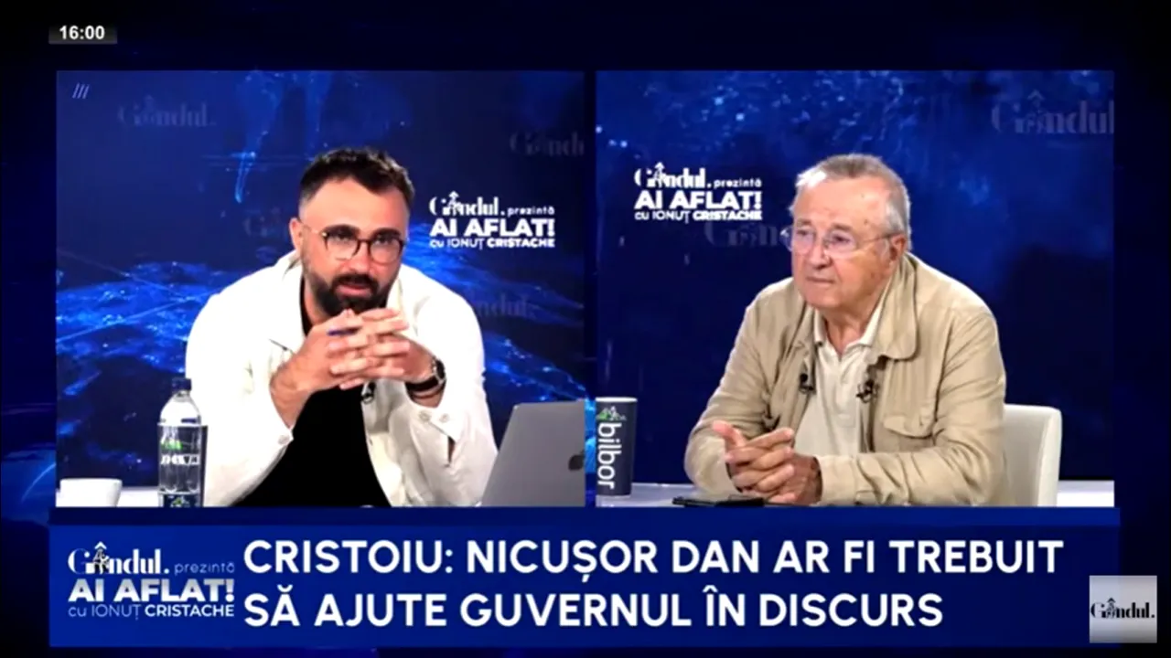 În cadrul unei ediții transmise live de Gândul a emisiunii „Ai aflat! cu Ionuț Cristache”, scriitorul și jurnalistul Ion Cristoiu a comentat relația de colaborare dintre președintele Nicușor Dan și premierul Bolojan, alături de guvernul format de acesta, remarcând o ușoară lipsă de cooperare între cele două părți. Urmăriți aici, integral, emisiunea lui Ionuț Cristache.