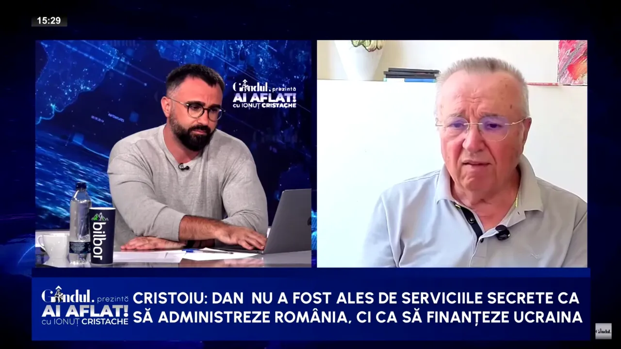 „Nu, nu aveți dreptate. Deficitul bugetul nu are nicio legătură cu ce spune Ucraina. Deficitul bugetar e ca într-o familiei, cheltuim mai mult decât câștigăm. (…) Deficitul bugetar nu e o chestiune care ține de Uniunea Europeană. Este un cancer al oricărei economii, finanțele sunt putrede. Se cheltuiește mai mult decât se câștigă”, a conchis Ion Cristoiu.
