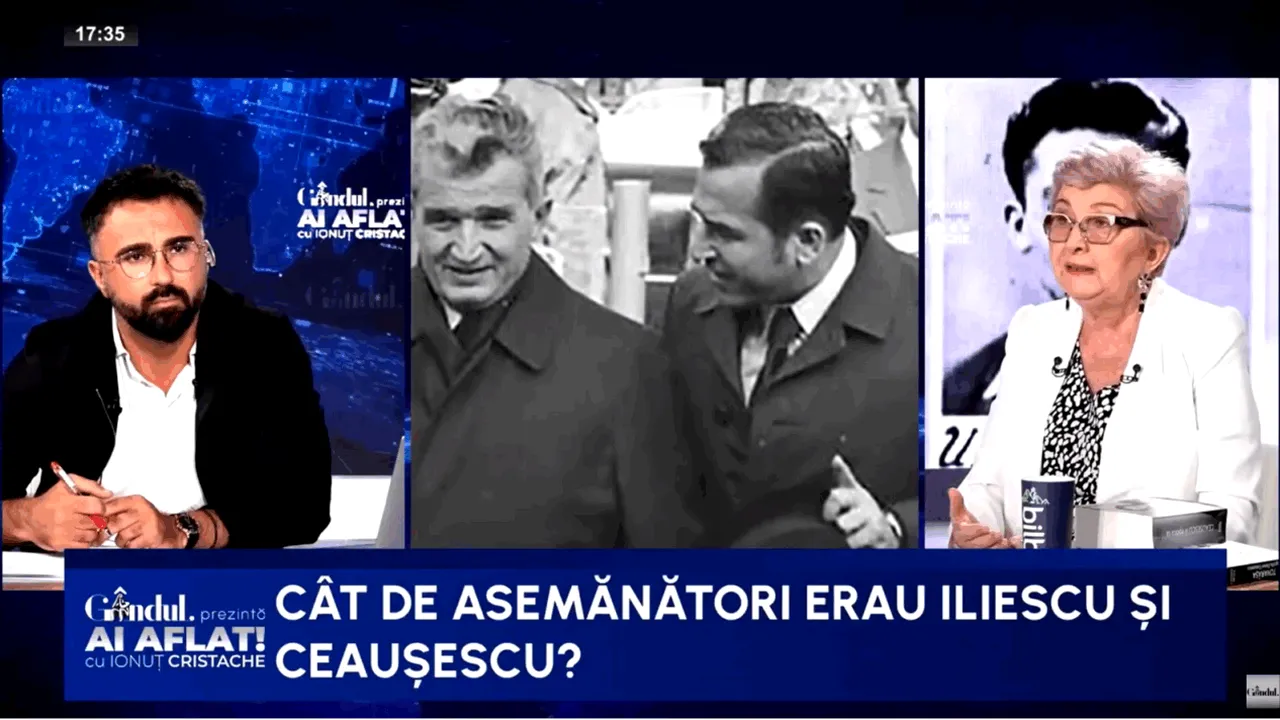 Lavinia Betea explică în emisiunea „Ai Aflat!” cu Ionuț Cristache evoluția morală, psihologică și ideologică a lui Nicolae Ceaușescu și Ion Iliescu, subliniind asemănările și diferențele dintre ei ca lideri comuniști din generații diferite. Urmăriți aici, integral emisiunea Ai Aflat cu Ionut Cristache.