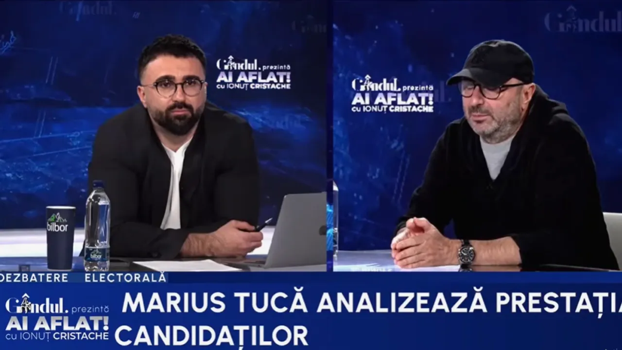 Jurnalistul Marius Tucă a fost invitat, marți, la emisiunea „Ai aflat! cu Ionuț Cristache”, unde a vorbit despre mai multe subiecte legate de alegerile prezidențiale din acest an. Printre altele, el a afirmat că Nicușor Dan este omul sistemului, dar nu și Elena Lasconi. Mai mult, se întreabă dacă vor fi anulate din nou alegerile, în cazul unei finale între George Simion și Victor Ponta.