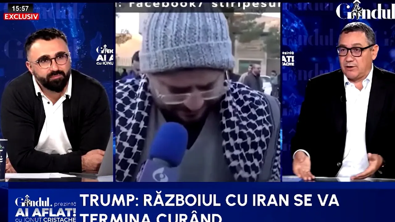 Războiul din Orientul Mijlociu a fost una din temele abordate de jurnalistul Ionuț Cristache alături de invitatul său în emisiunea Ai Aflat!, Victor Ponta. Fostul premier social-democrat avertizează că planul președintelui Donald Trump de a soluționa rapid criza din Iran s-a lovit de un eșec neprevăzut, ale cărui consecințe nefaste le va resimți întreaga economie globală.