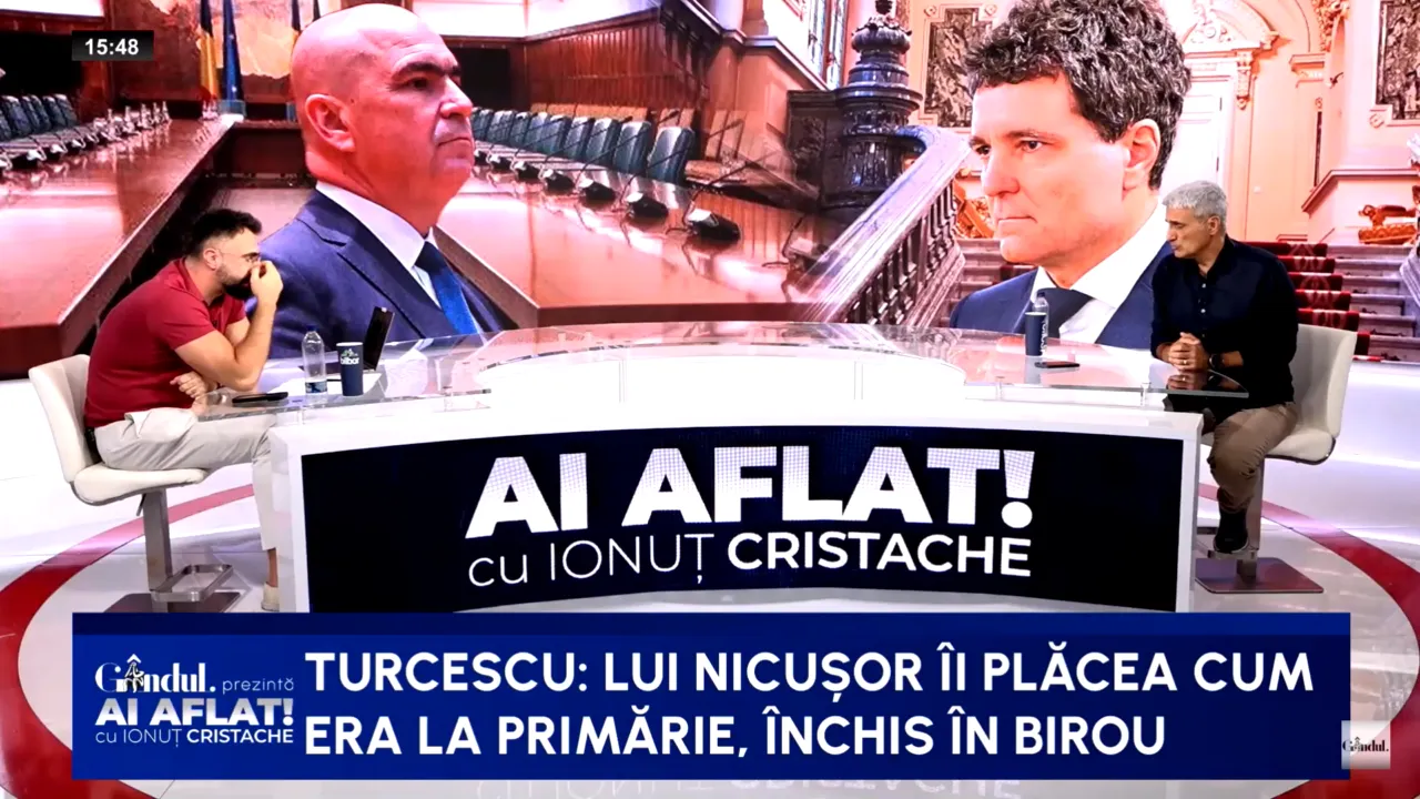 Într-o ediție a emisiunii „Ai aflat! cu Ionuț Cristache”, Robert Turcescu l-a criticat dur pe președintele României Nicușor Dan. Acesta a afirmat că șeful statului trăiește în lumea proprie și nu se potrivește funcției pe care o deține. Urmăriți aici emisiunea integrală.