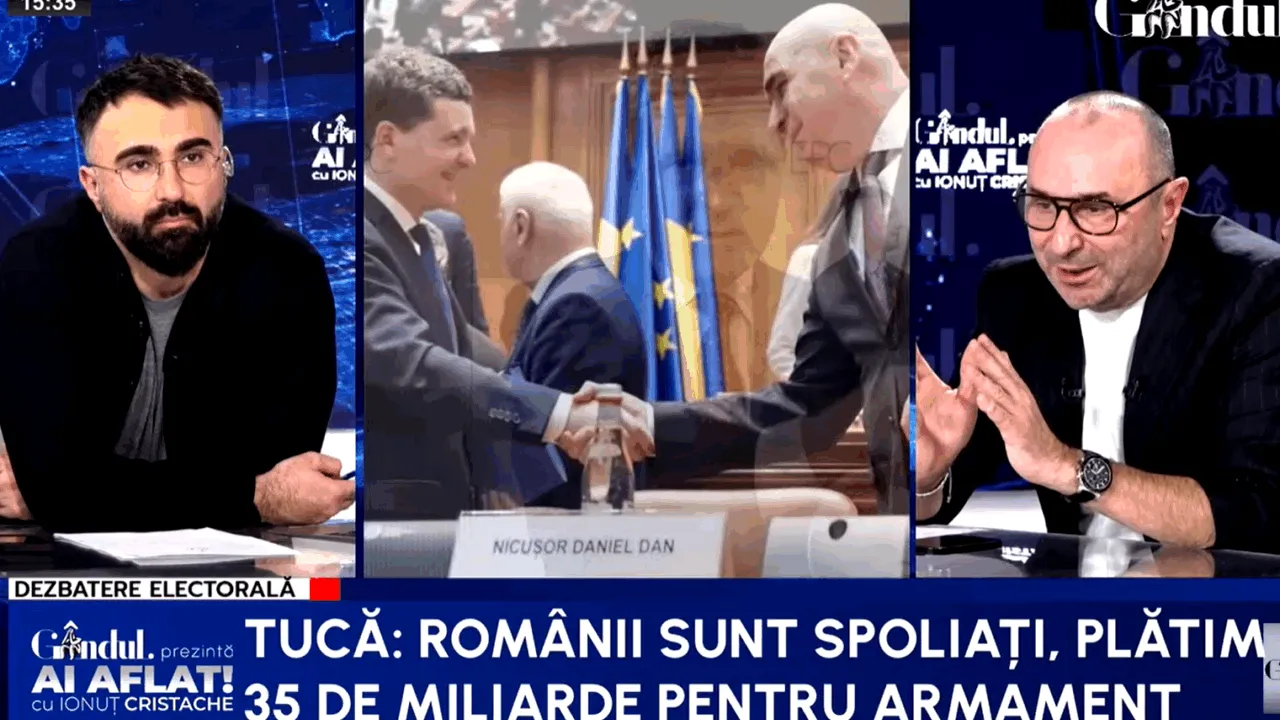 Ediția specială de joi a emisiunii Ai Aflat! cu Ionuț Cristache a găzduit un dialog cu jurnalistul Marius Tucă dedicat împlinirii unui an de la anularea alegerilor prezidențiale din 2024 și a instalării unei noi formule de guvernare. În viziunea cunoscutului jurnalist, tandemul Nicușor Dan – Ilie Bolojan semnifică o opoziție fățișă față de ideologia antiprogresistă venită de peste Ocean și a politicii administrației Trump, culminând cu o îndepărtare evidentă de partenerul strategic al României.
