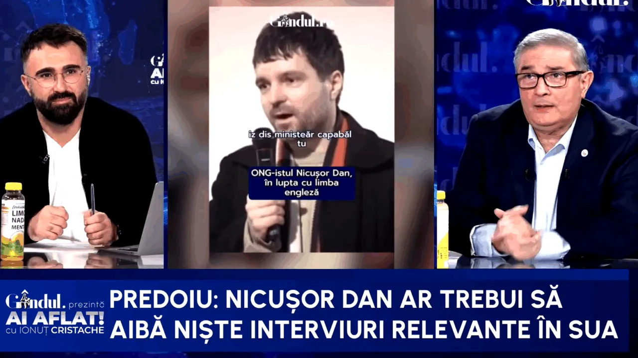 Ediția de miercuri a emisiunii Ai Aflat!, transmisă live din studioul Gândul, a fost cadrul unui dialog transparent între jurnalistul Ionuț Cristahe și fostul director al Serviciului de Informații Externe (SIE), Silviu Predoiu. În viziunea fostului șef al spionilor, Nicușor Dan nu a convins administrația Trump de justețea anulării alegerilor din 2024.