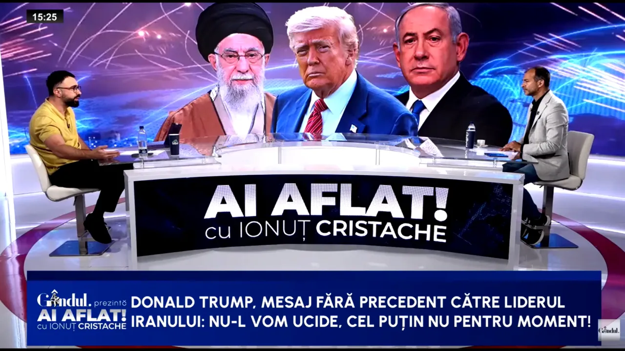 În cadrul unei ediții transmise live de Gândul a emisiunii „Ai aflat! cu Ionuț Cristache”, Ștefan Popescu a vorbit despre implicarea Statelor Unite, dar și a țărilor occidentale, în conflictul generat în Orientul Mijlociu, subliniind implicațiile geopolitice pe care acest conflict le poate avea în regiune. Urmăriți aici, integral, emisiunea lui Ionuț Cristache.