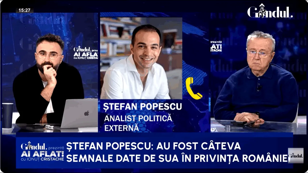 Analistul de politică externă, Ștefan Popescu, a avut o intervenție telefonică în cadrul emisiuniii Ai aflat! cu Ionuț Cristache, unde a explicat motivul care, din punctul său de vedere, stă la baza deciziei președintelui Nicușor Dan de a participa la Consiliul de Pace al lui Trump.