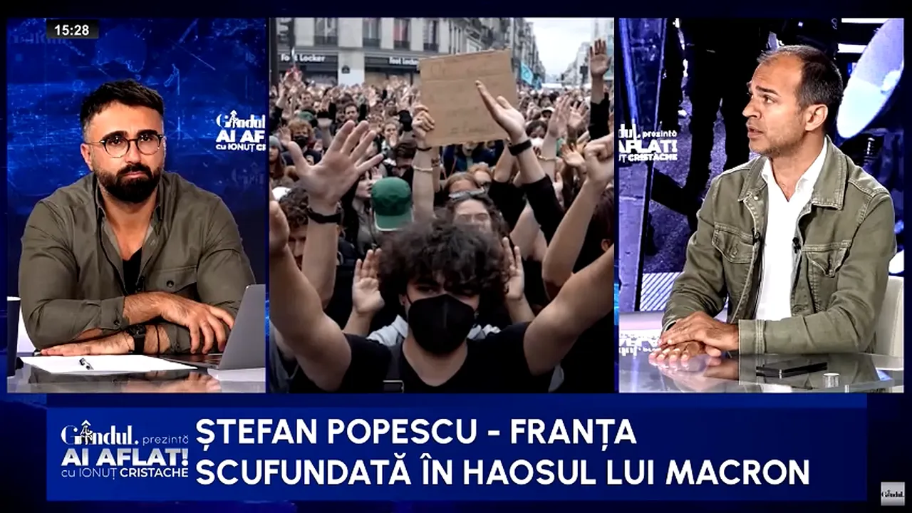 În cadrul emisiunii Ai aflat! cu Ionuț Cristache, Ștefan Popescu a vorbit despre criza politică și economică prin care trece Franța, pe fondul eșecurilor mandatului lui Emmanuel Macron. Urmăriți aici emisiunea integrală.