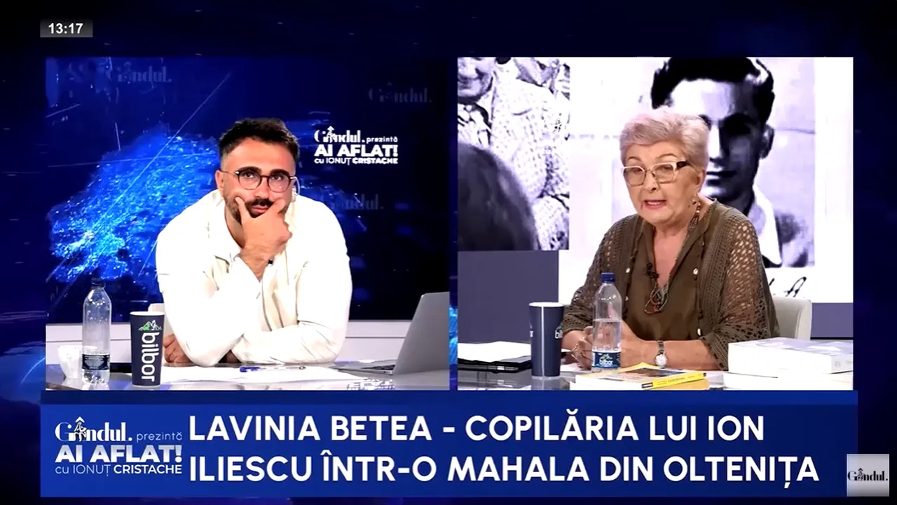 În cadrul unei ediții speciale transmise live de Gândul a emisiunii „Ai Aflat!, cu Ionuț Cristache”, Lavinia Betea, autor, lector în psihologie și istoric, a vorbit despre universul copilăriei lui Ion Iliescu. Urmăriți aici, integral, emisiunea lui Ionuț Cristache.