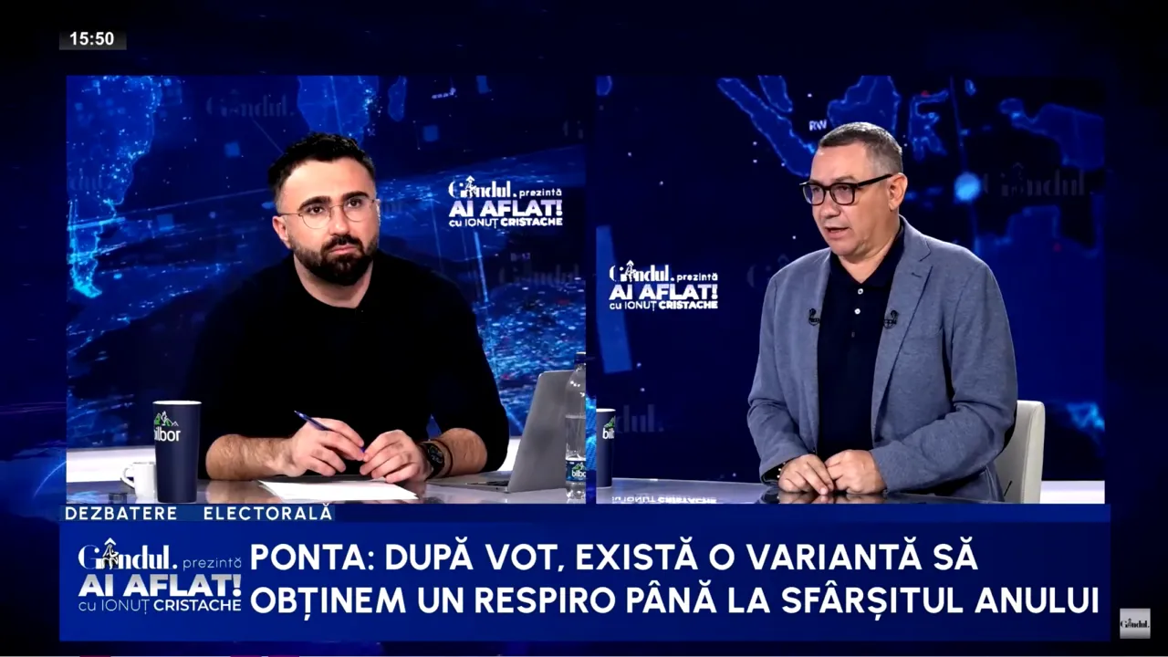 În cadrul unei ediții transmise live de Gândul a emisiunii „Ai aflat! cu Ionuț Cristache”, fostul prim-ministru Victor Ponta a adus în vedere un scenariu sumbru pentru economia românească. Acesta a atenționat că românii cu venituri mici vor fi cei mai afectați. Urmăriți aici, integral, emisiunea lui Ionuț Cristache.