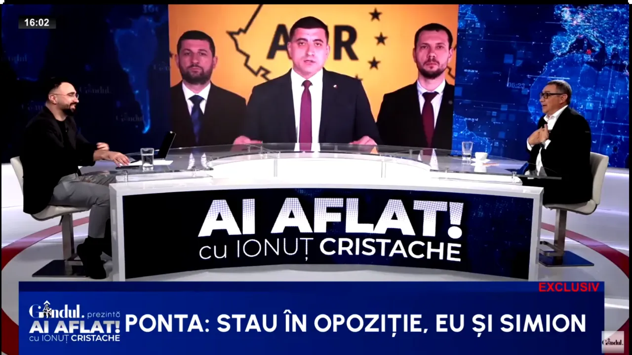 Politicianul naționalist de centru stânga, care s-a situat pe locul 4, a comentat în exclusivitate la „Ai Aflat! cu Ionuț Cristache” despre performanța din turul 2 a candidatului naționalist de la AUR, George Simion. Întrebat dacă a făcut alianță, Victor Ponta a spus: