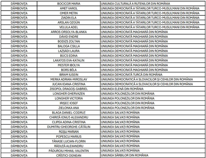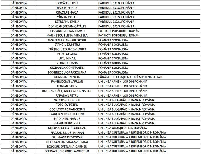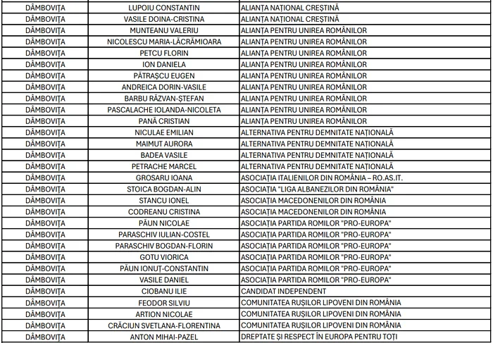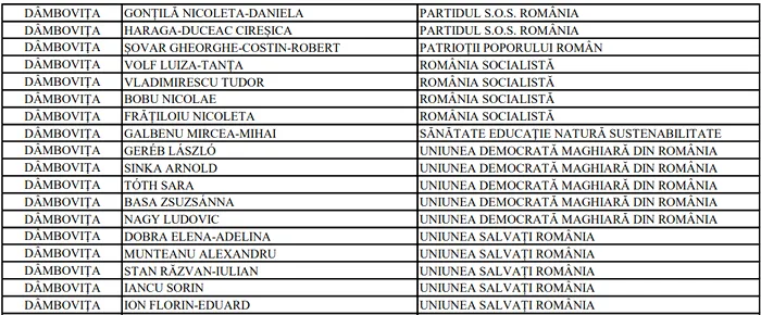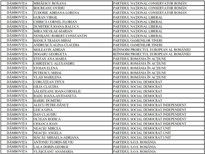 În Dâmbovița, ordinea partidelor pe buletinul de vot, la Senat, a fost stabilită prin tragere la sorți. În total, 66 de candidaţi se luptă pentru un loc în Senatul României din partea partidelor politice.