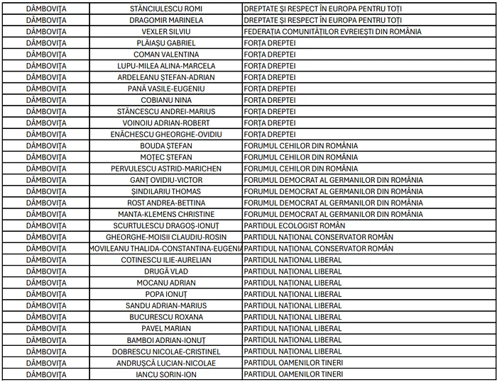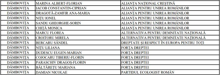 În ceea ce privește Camera Deputaților, în județul Dâmbovița, 167 de candidaţi din 38 de partide și alianțe, dar și un independent, se întrec pentru locurile din Parlamentul României.