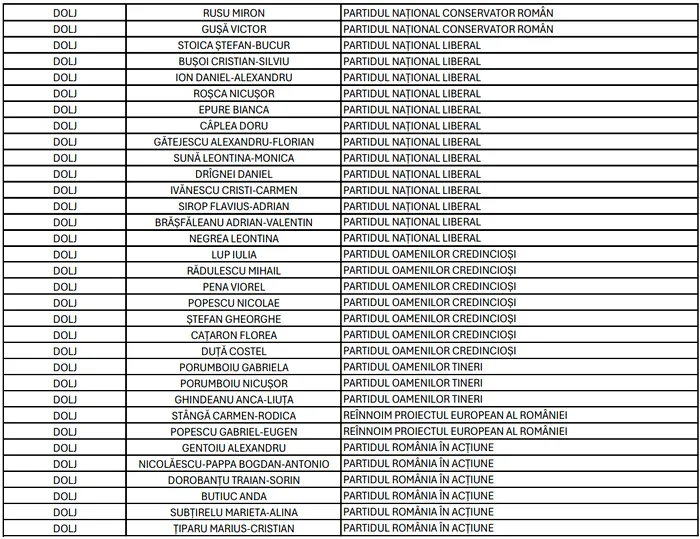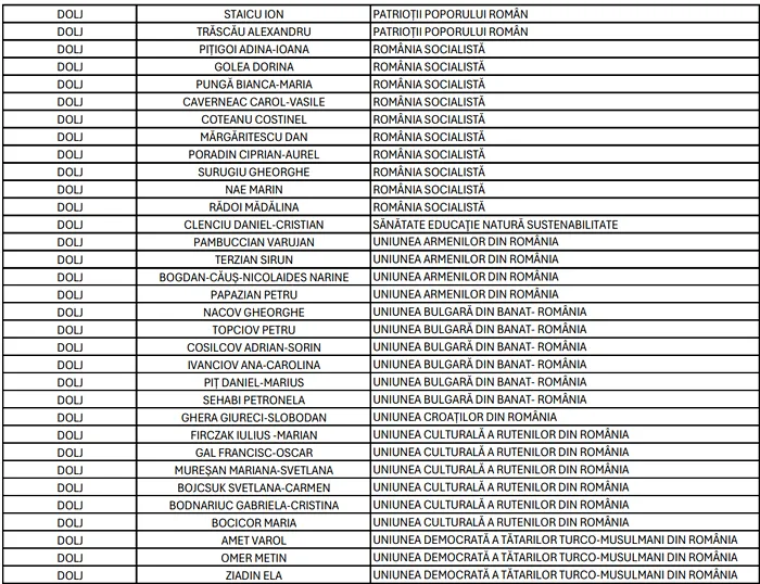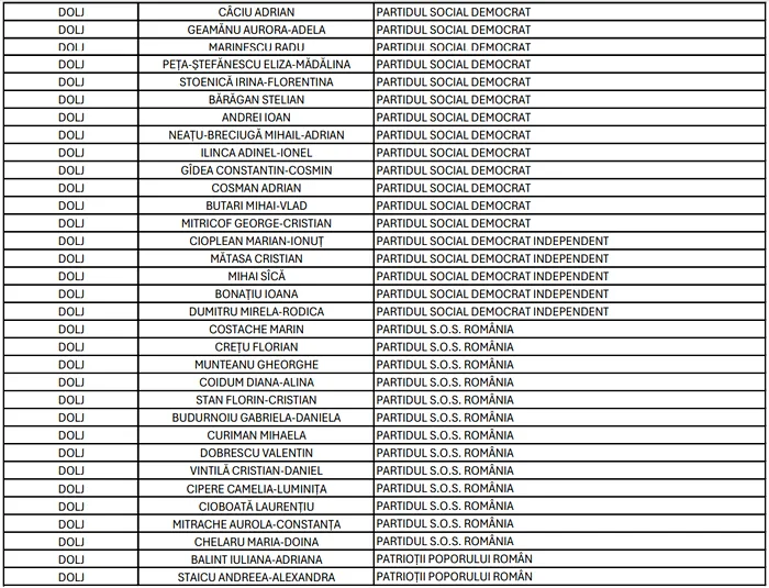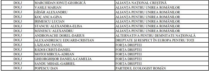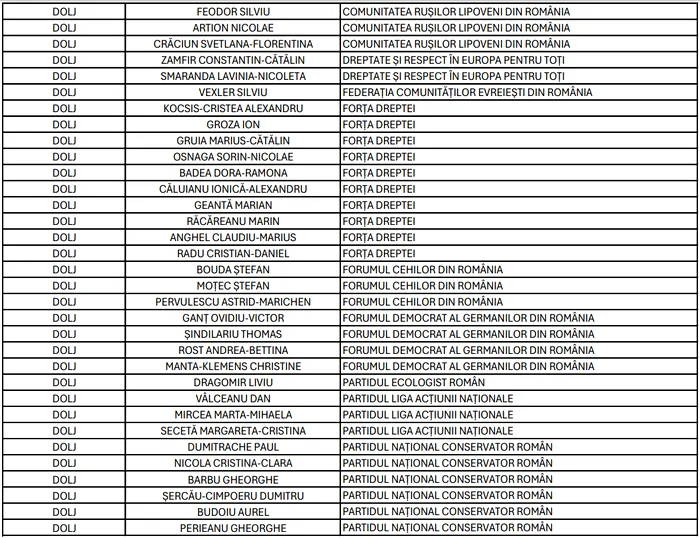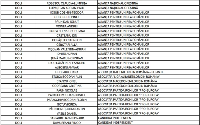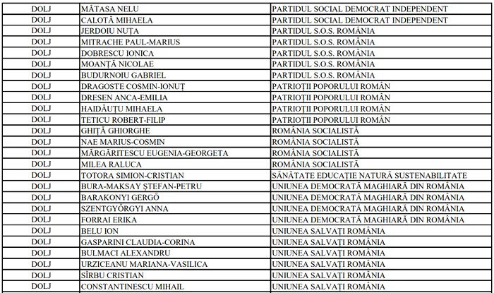 În ceea ce privește Camera Deputaților, în județul Dolj, 197 de candidați se întrec pentru locurile din Parlamentul României, din partea a 41 de partide, alianțe și organizații de minorități naționale.