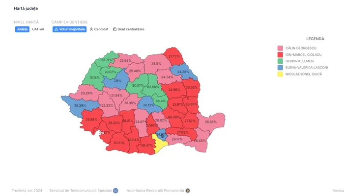 Rezultate parţiale provizorii alegeri prezidenţiale 2024, după încheierea votului în secţii, sunt transmise în timp real de către Autoritatea Electorală Permanentă pe site-ul prezenta.roaep.ro