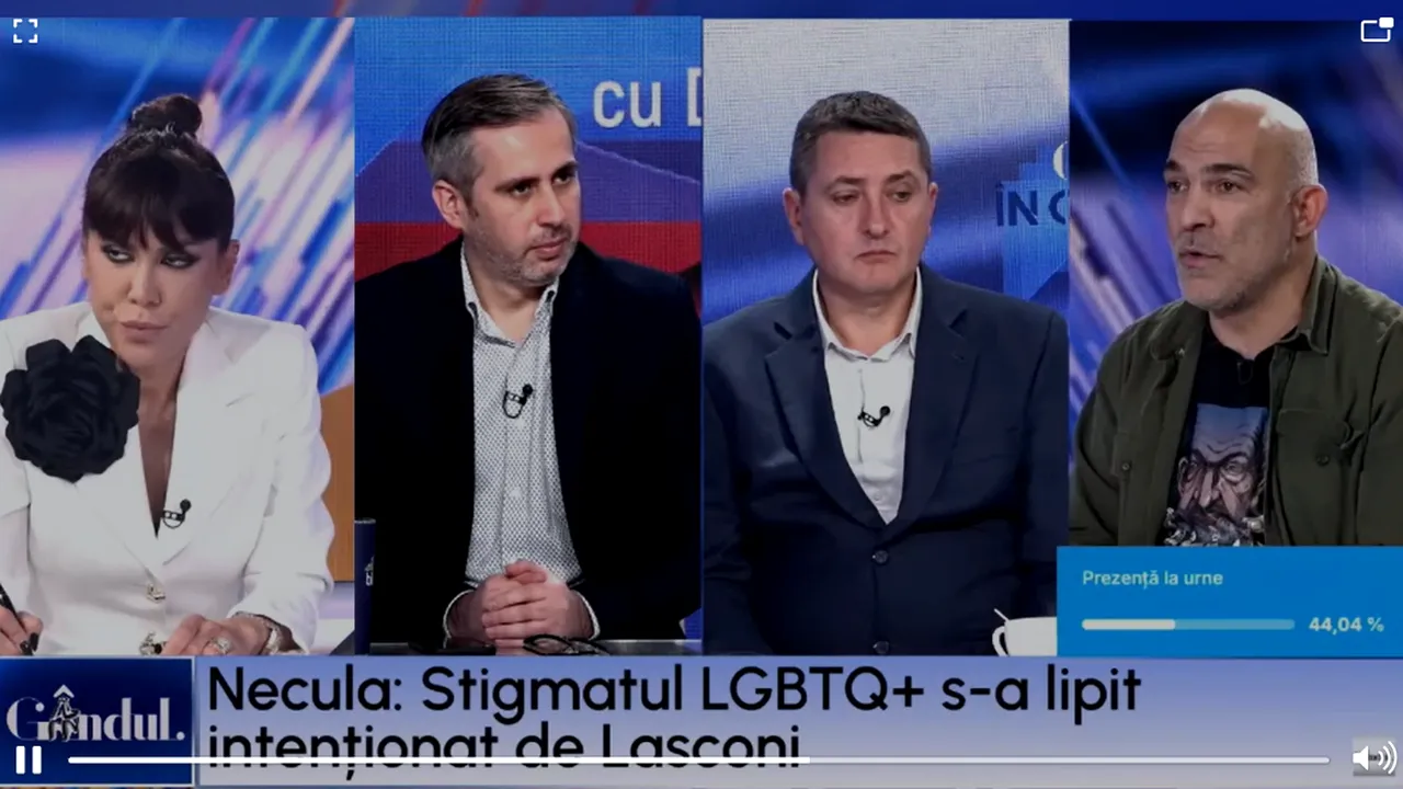 Invitat la emisiunea Față în față a Denisei Rifai, sociologul Ciprian Necula a afirmat că eticheta LBGQ+ s-a lipit de candidatul Elena Lasconi, în ciuda poziționarii oficiale a ei de partea familiei tradiționale. Această percepție poate fi găsită și în rândul comunității rome. Dar Necula i-a interogat pe conaționalii săi de ce le este totuși mai frică, de gay sau de ruși?