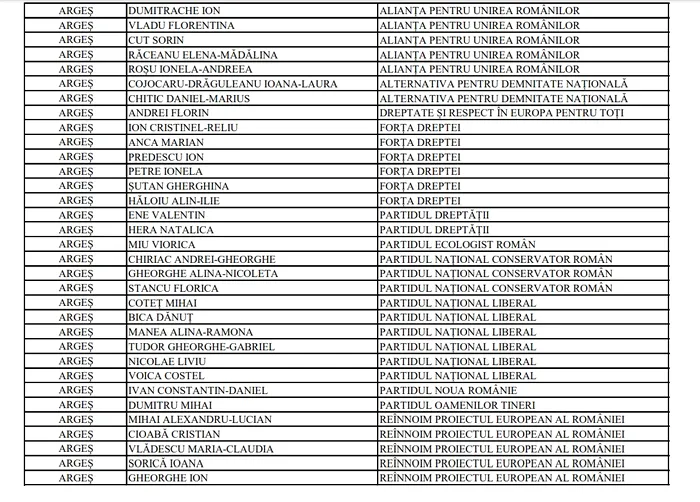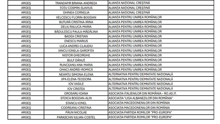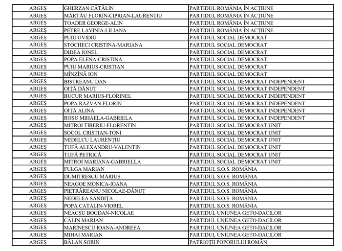 Lista candidaților din județul Argeș pentru Camera Deputaților (1)