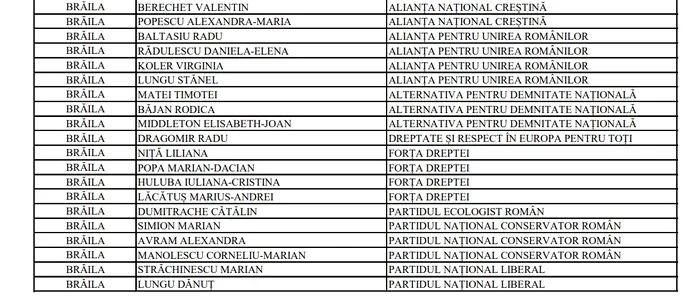 Lista în care apar candidații înscriși pentru Camera Deputaților, din județul Brăila, poate fi consultată în GALERIA FOTO a articolului.