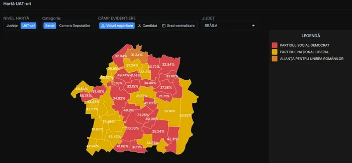 • PSD ocupă primul loc la Brăila, pentru Senat, cu 31.19% (38.922 de voturi);