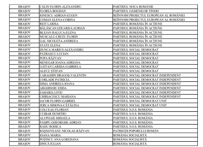 Pe lista pentru Senat, din partea județului Brașov, sunt 80 de candidați, după cum urmează: