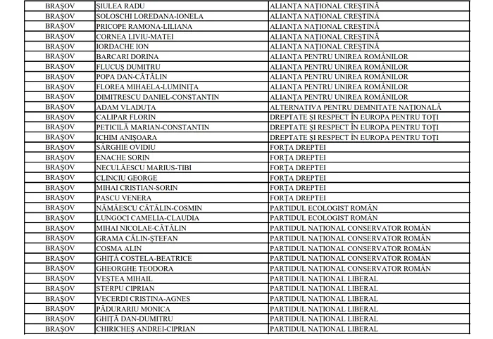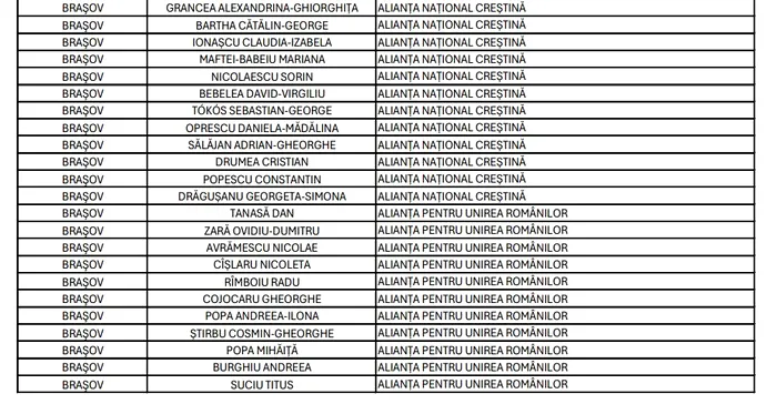 Iată cum arată listele pentru județul Brașov – Senat și Camera Deputaților.