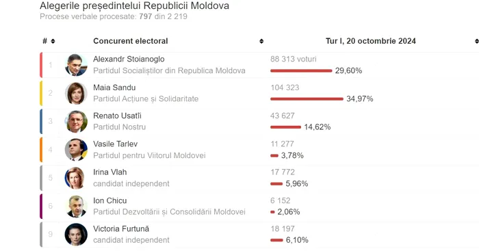Clasamentul candidaților, după numărătoarea parțială până la ora 23:00 (sursa: alegeri.md)