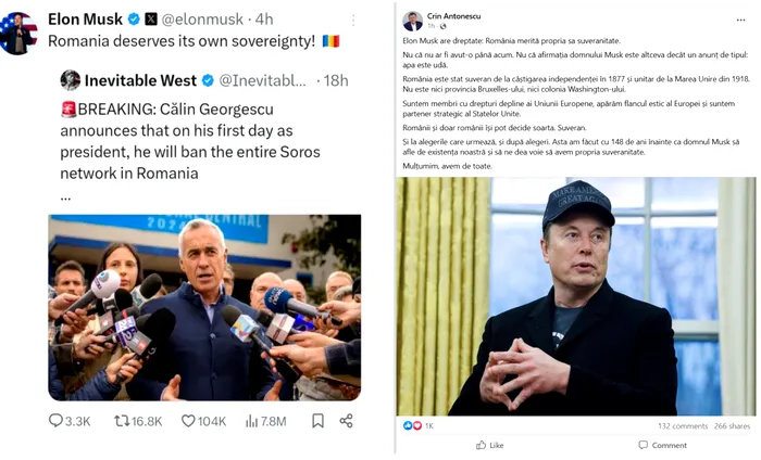 Elon Musk, în calitate de șef al departamentului de eficiență guvernamentală din administrația președintelui Donald Trump, a postat pe rețeaua X despre suveranitatea României și despre intenția lui Călin Georgescu de a interzice rețeaua Soros în România.