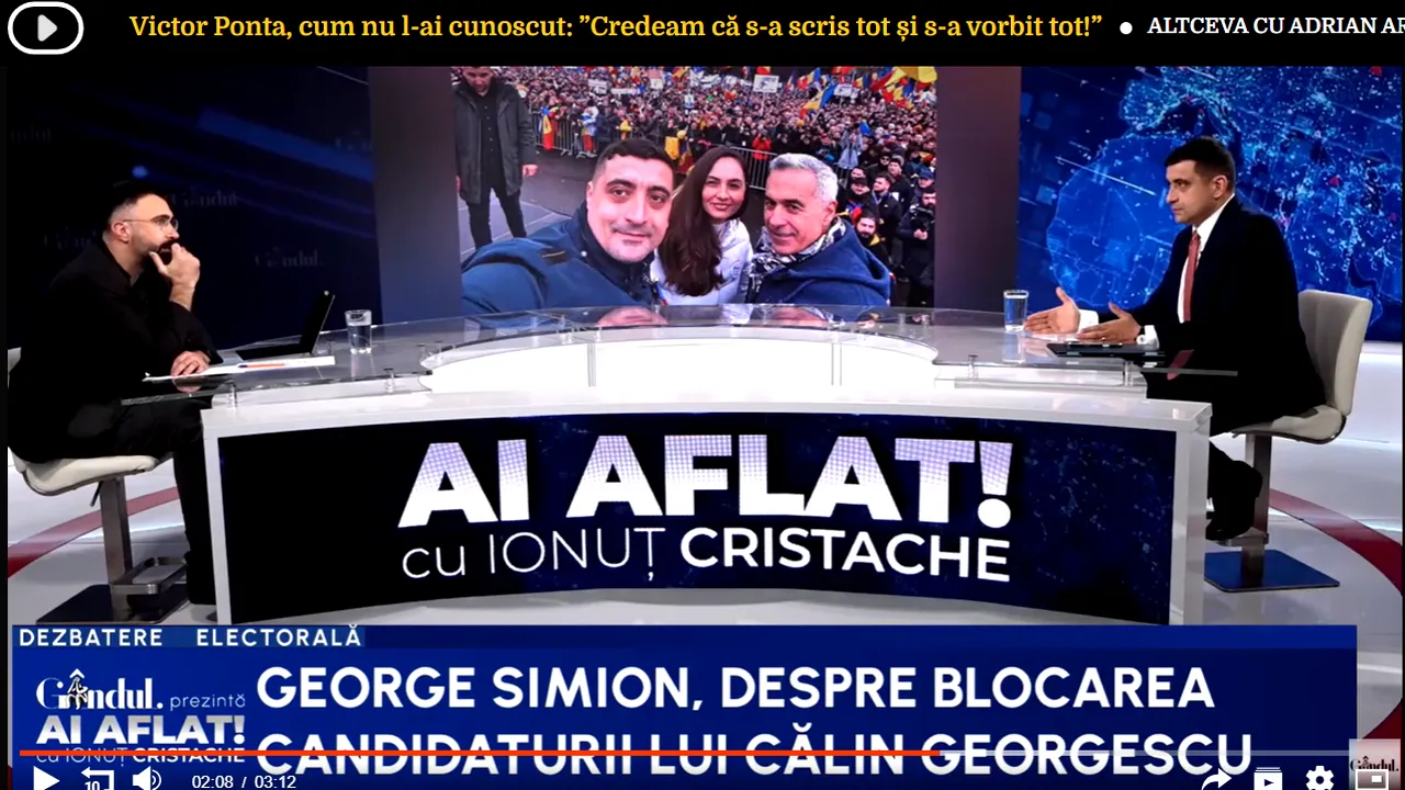 George Simion face un portret politic al lui Cătălin Georgescu. În opinia sa, fostul candidat este un om care își iubește țara și care ar fi ajuns Președinte al României dacă nu ar fi fost scos abuziv din cursa electorală. Pe de altă parte, Parchetul funcționează politizat, cel puțin în cazul Georgescu, care a fost ridicat de pe stradă și adus al audieri, consideră Simion.