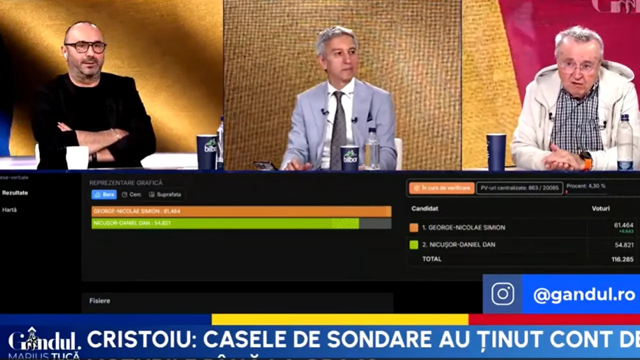 Scriitorul și jurnalistul Ion Cristoiu a comentat rezultatele preliminare al turului doi de la alegerile prezidențiale prin prisma reacțiilor celor doi candidați, George Simion și Nicușor Dan. Cristoiu a precizat că ambii „și-au proclamat victoria”, dar „niciunul dintre ei n-a vorbit de fraudare”.