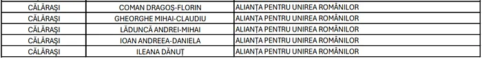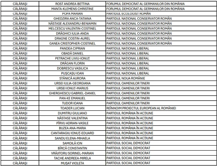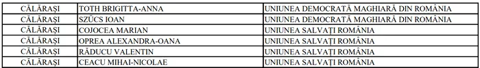 Rezultate finale Călăraşi – Camera Deputaţilor