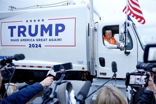 Miercuri, la evenimentul din Wisconsin, Trump a venit într-o mașină de salubrizare, purtând o uniformă de gunoier și în discursul său a făcut referire clară la declarația lui Biden.