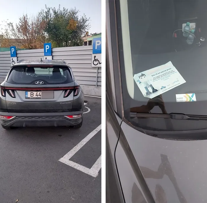 Șoferul unui Hyundai a reușit să ocupe nu unul, ci două locuri de parcare destinate persoanelor cu handicap.