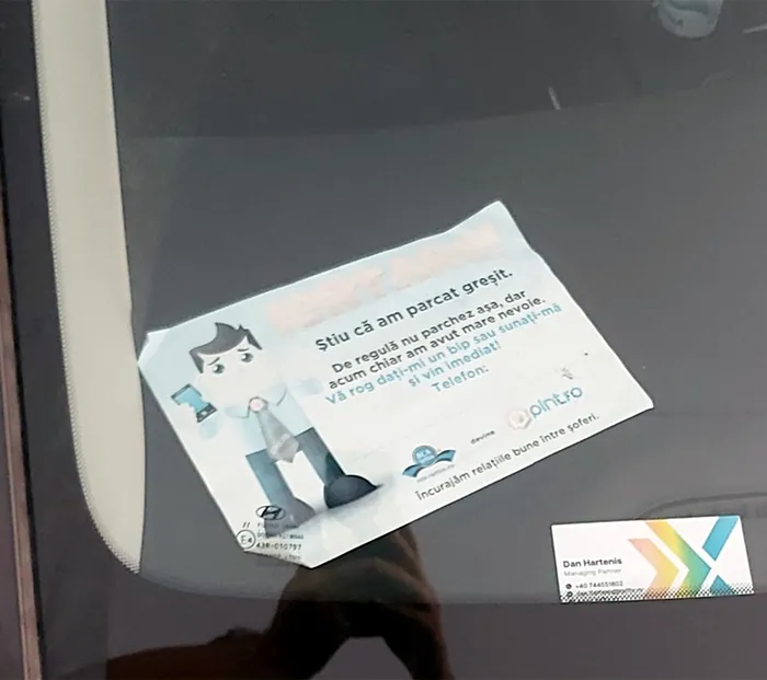 Iată ce bilețel a lăsat în parbriz un șofer din Capitală, după ce a parcat pe locul persoanelor cu handicap: „Știu că am parcat greșit. De regulă nu parchez așa, dar acum chiar am avut mare nevoie. Vă rog dați-mi un bip sau sunați-mă și vin imediat! Telefon…”