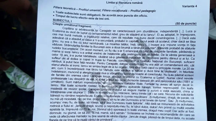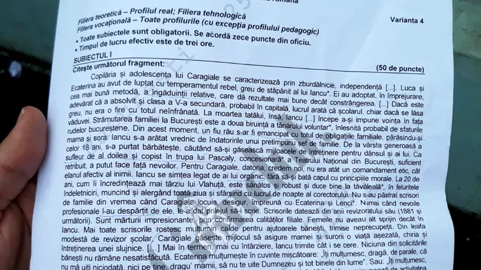 La Limba și literatura română, toți candidații au cerințe comune la subiectele I și II, indiferent de profil. Diferența a fost doar cerința de la subiectul al III-lea.