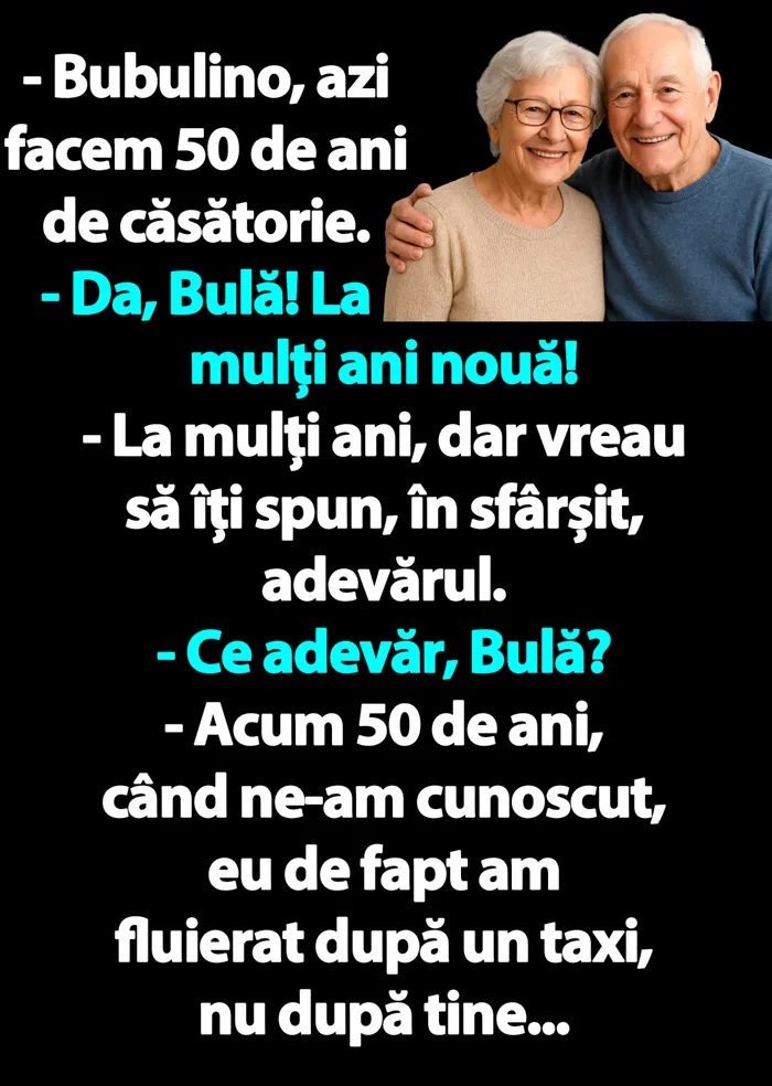 Acum 50 de ani, când ne-am cunoscut, eu de fapt am fluierat după un taxi, nu după tine…