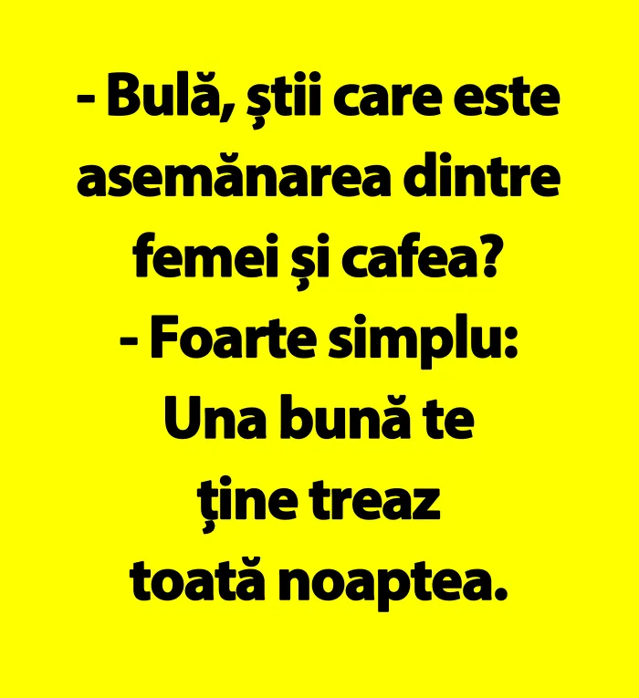 BANC | „Bulă, care e asemănarea dintre femei și cafea?” Bancul zilei vă va aduce garantat zâmbetul pe buze, în această zi de sâmbătă, 6 septembrie.