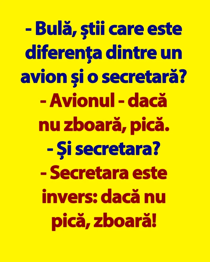 – Bulă, știi care este diferența dintre un avion și o secretară?