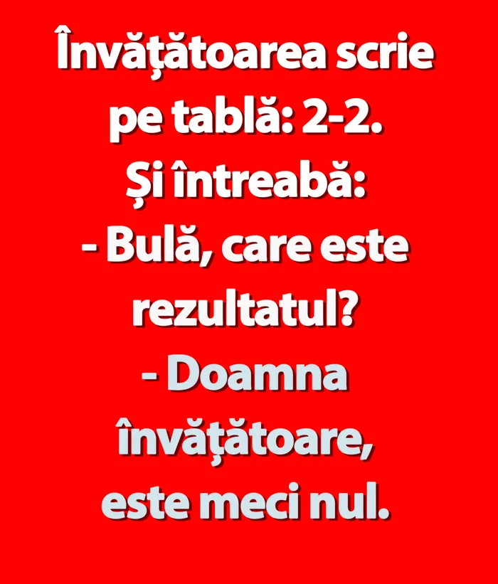 Joi, Gândul vă propune un nou banc spumos, marca Bulă. De data aceasta, Bulă este la școală, în clasele primare, la ora de matematică. Învățătoarea îl roagă pe Bulă să rezolve un exercițiu. Iată ce anume a ieșit!
