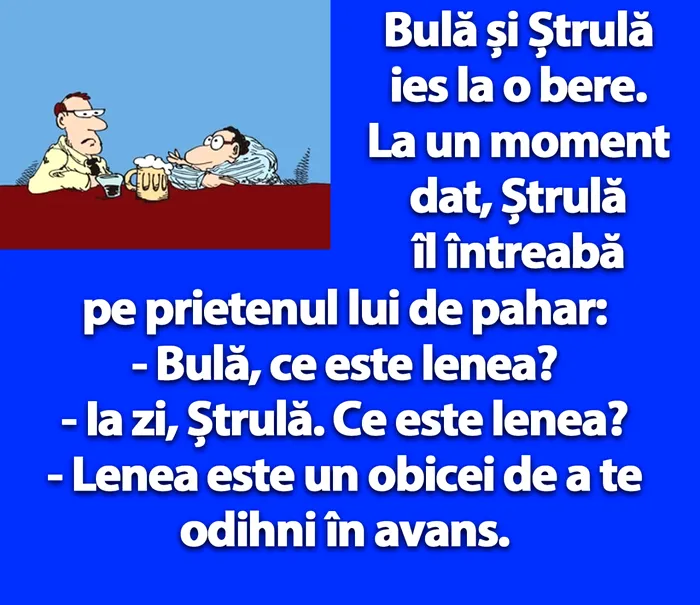 Bulă și Ștrulă ies la o bere. La un moment dat, Ștrulă îl întreabă pe prietenul lui de pahar: