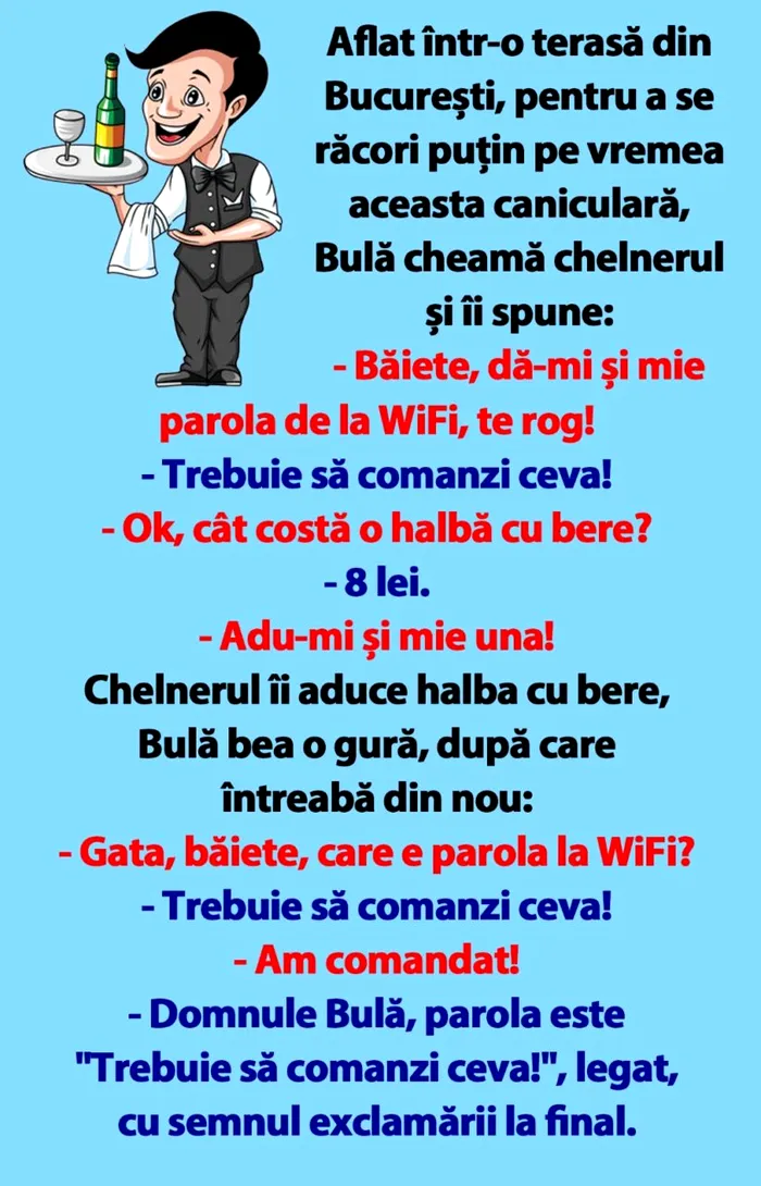 Prima pagină » Bancuri » BANC | Bulă cere parola de WiFi, într-o terasă din București