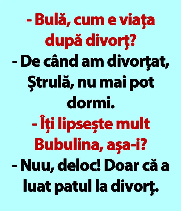 – Nuu, deloc! Doar că a luat patul la divorț.