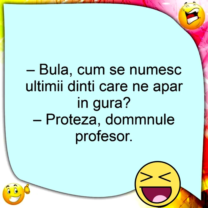 Bancul de marți | „Bulă, cum se numesc ultimii dinți care ne apar în gură?”